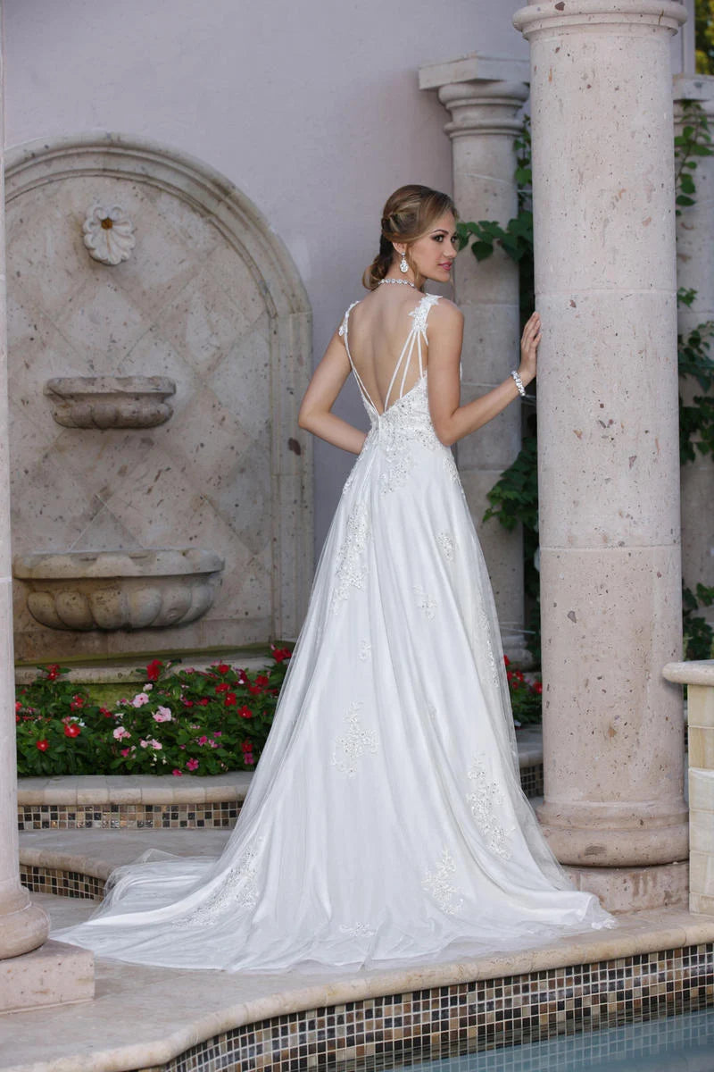 The fabric in this DaVinci Bridal Collection style is Tulle