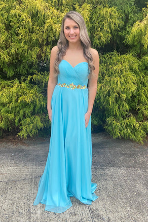 ALYCE Paris 35576 Light Turquoise Chiffon Jeweled Waist A-Line Dress
