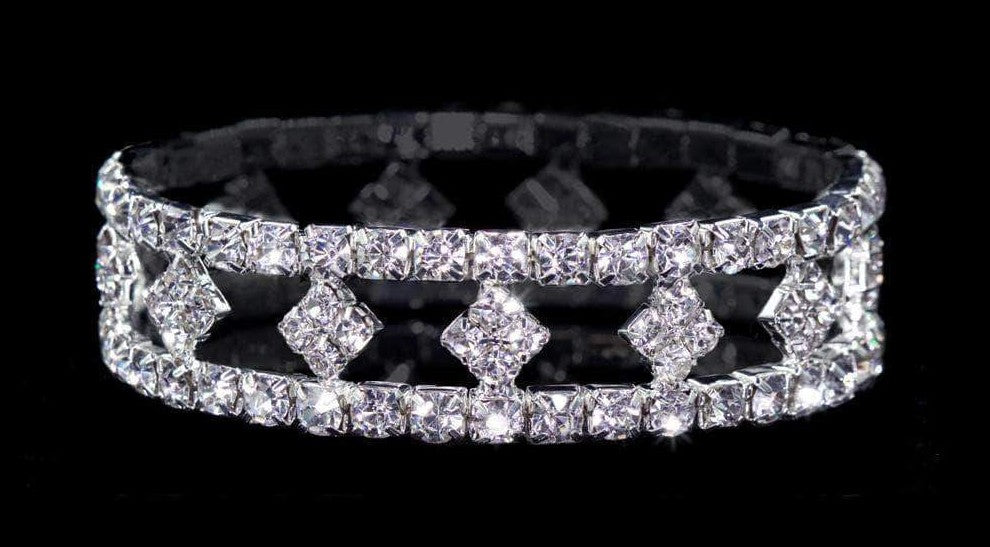 Diamond Design Rhinestone Stretch Silver Bracelet