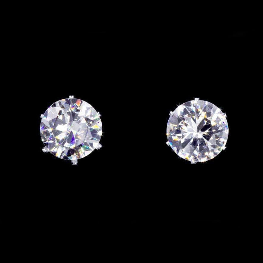 Clear Crystal Cubic Zirconia 3 Carat (9mm) Stud Earrings. Hypo Posts. Plated in Sterling Silver.