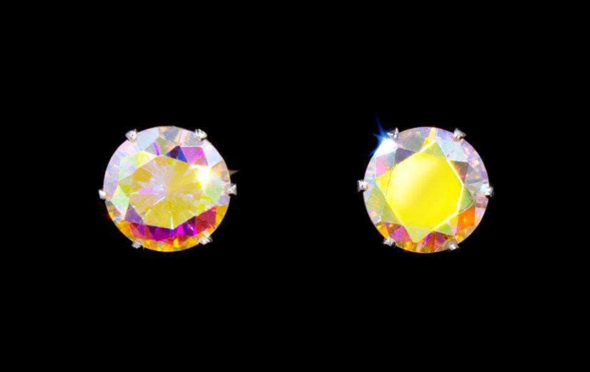 Cubic Zirconia Stud Earrings - Silk AB Iridescent