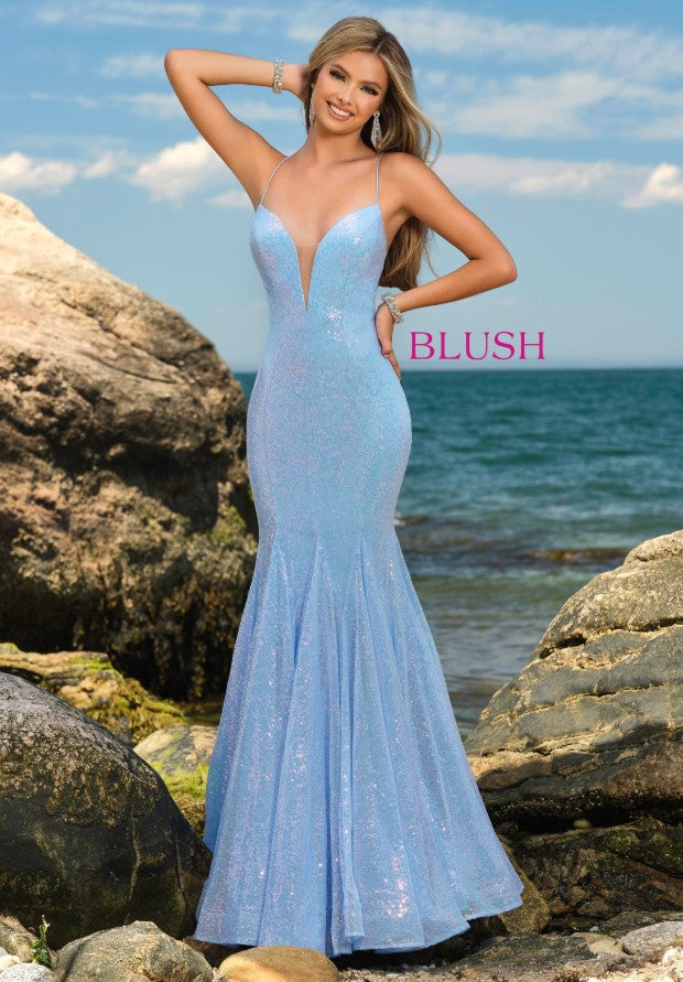 Blush Prom 20512 Crystal Blue Sequin Fit-n-Flare Dress