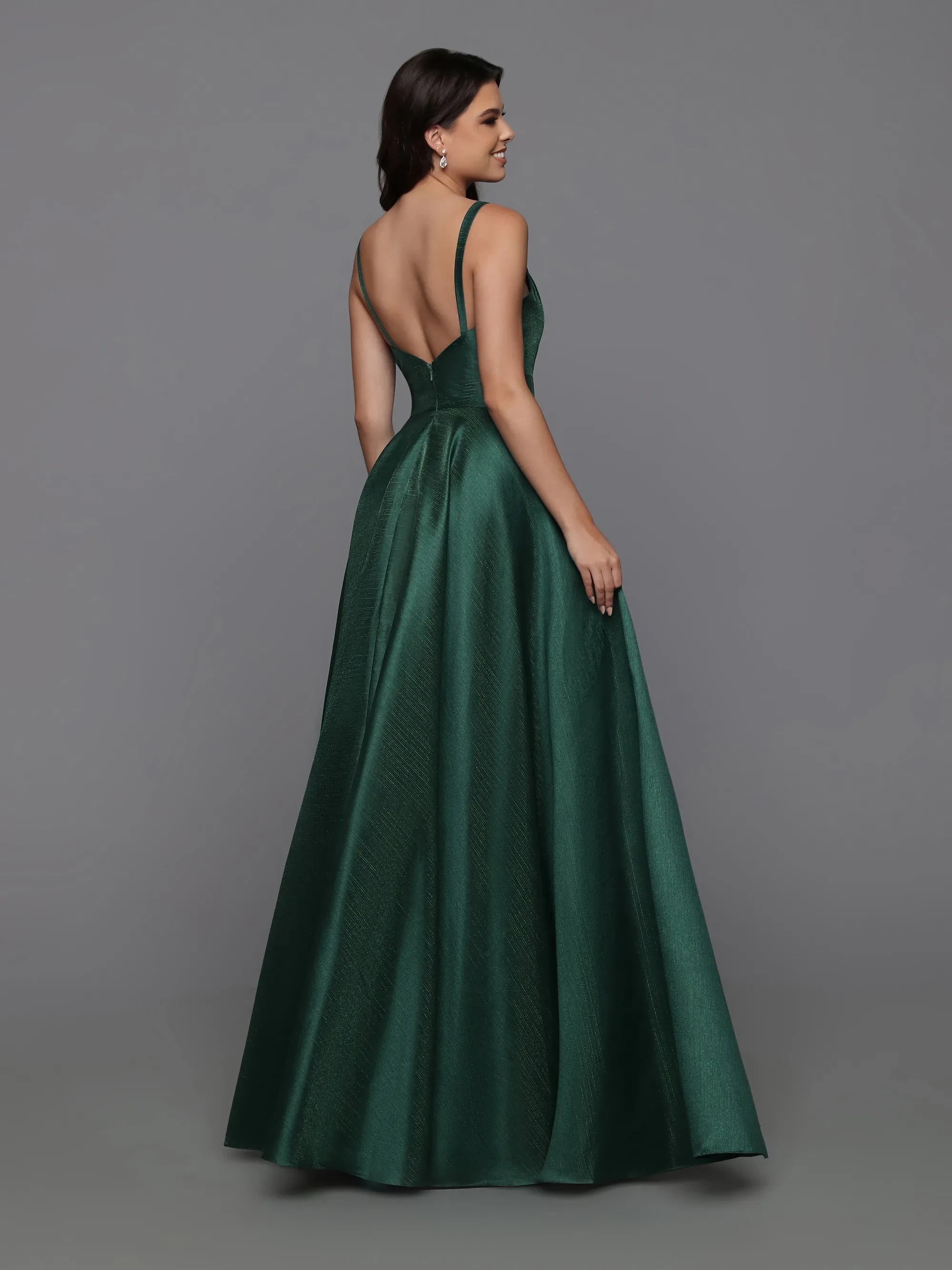 Sparkle Prom style 72228 is a beautiful Emerald Green silk shantung a-line with deep v-neckline and high slit.