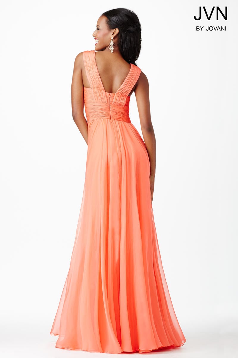 JVN by Jovani 94199 Coral Modest Chiffon Dress