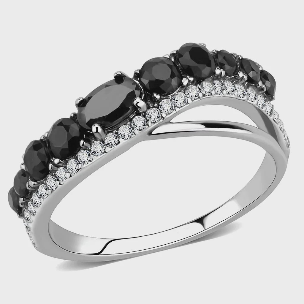 Women's Stainless Steel AAA Grade CZ in Black Diamond Minimal Ring