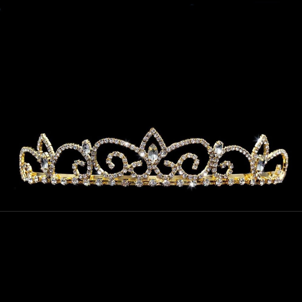 1 1/8" Gold plated crystal rhinestone tiara with combs on either side.