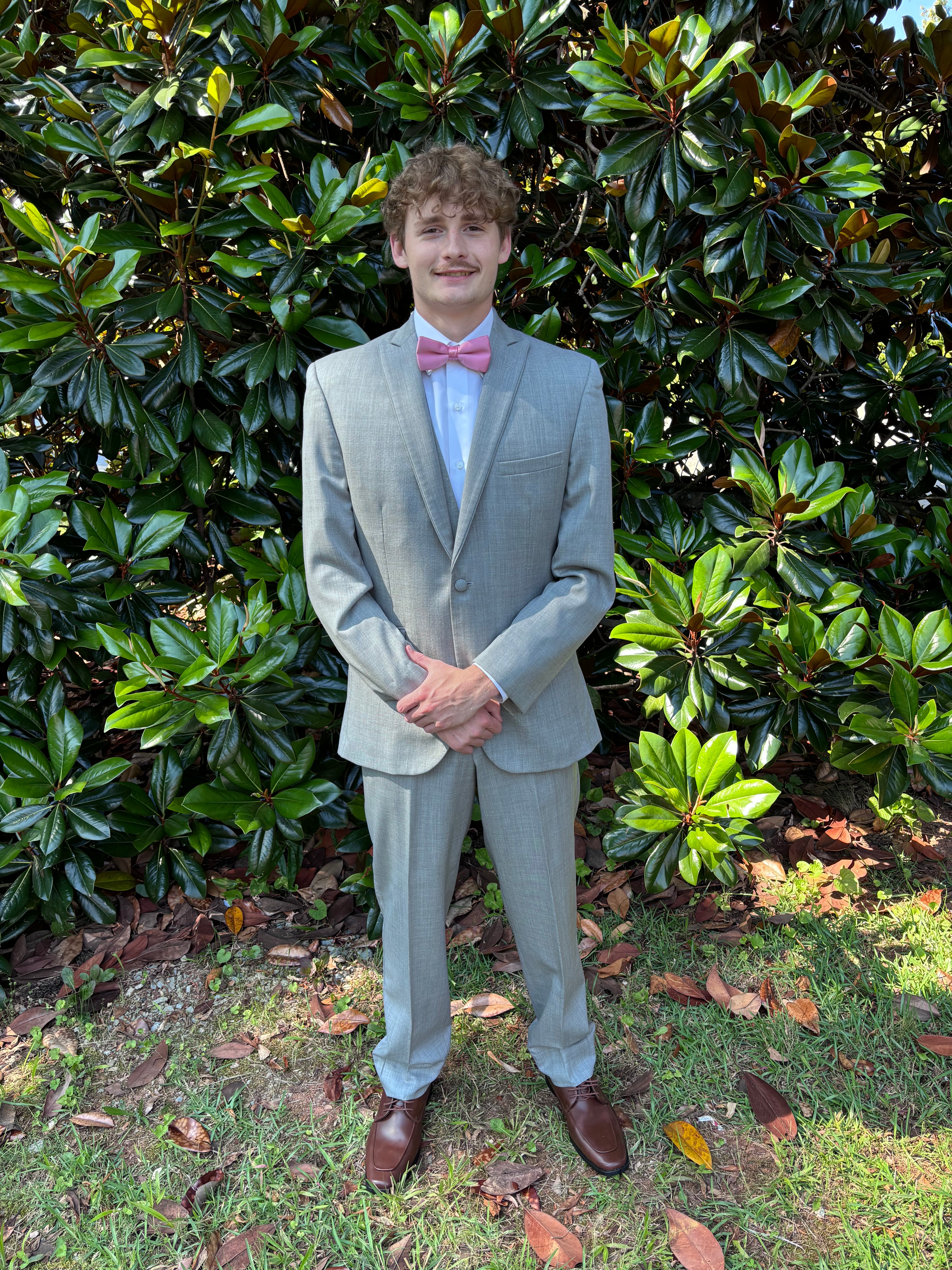 The Heather Grey Hamilton is a Tuxedo Jacket featuring a trimmed lapel that can be dressed up as a tuxedo or worn more casual as a suit. Matching adjustable waist pants included.