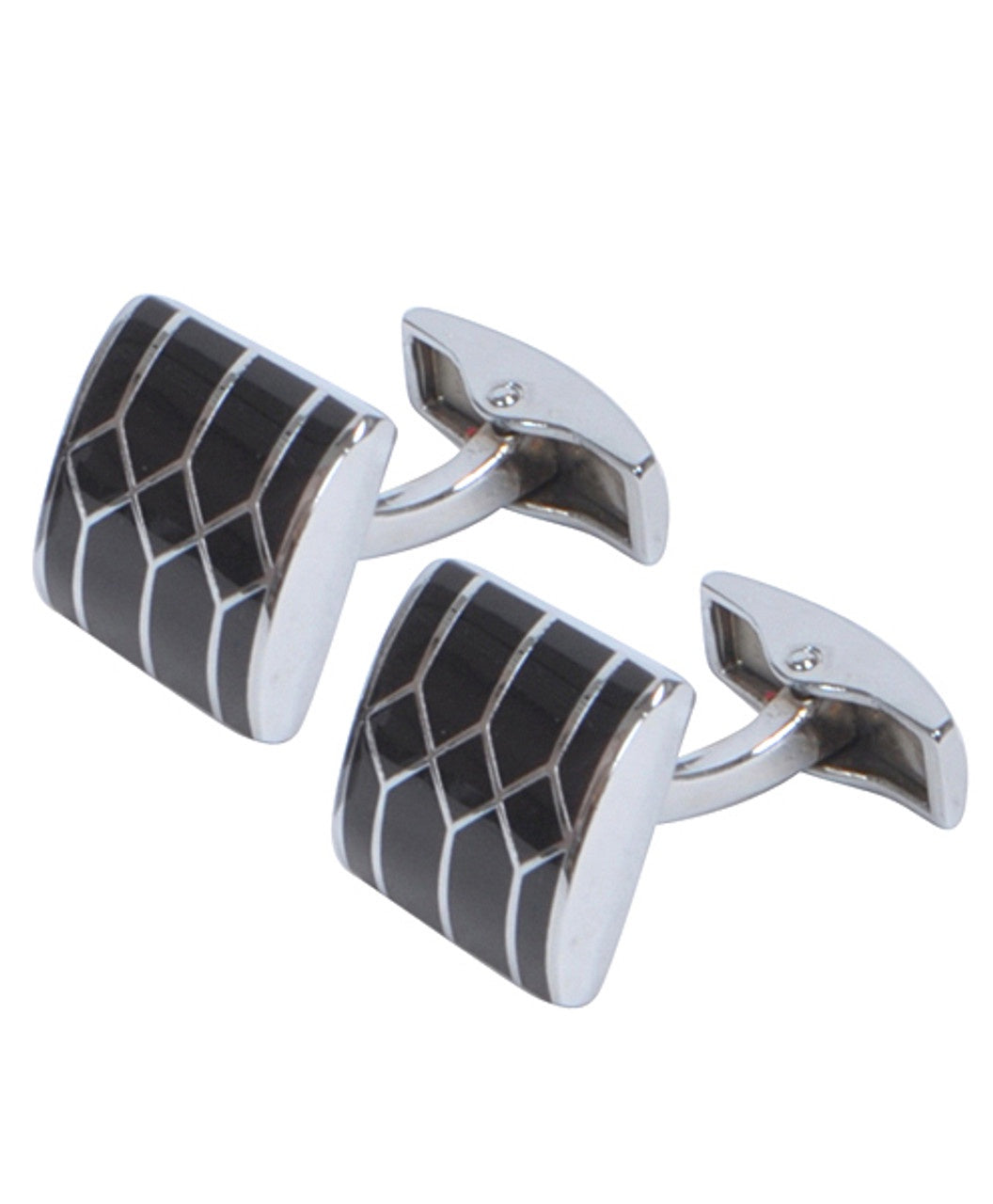 Black and Silver Geometric Design Cufflink Set